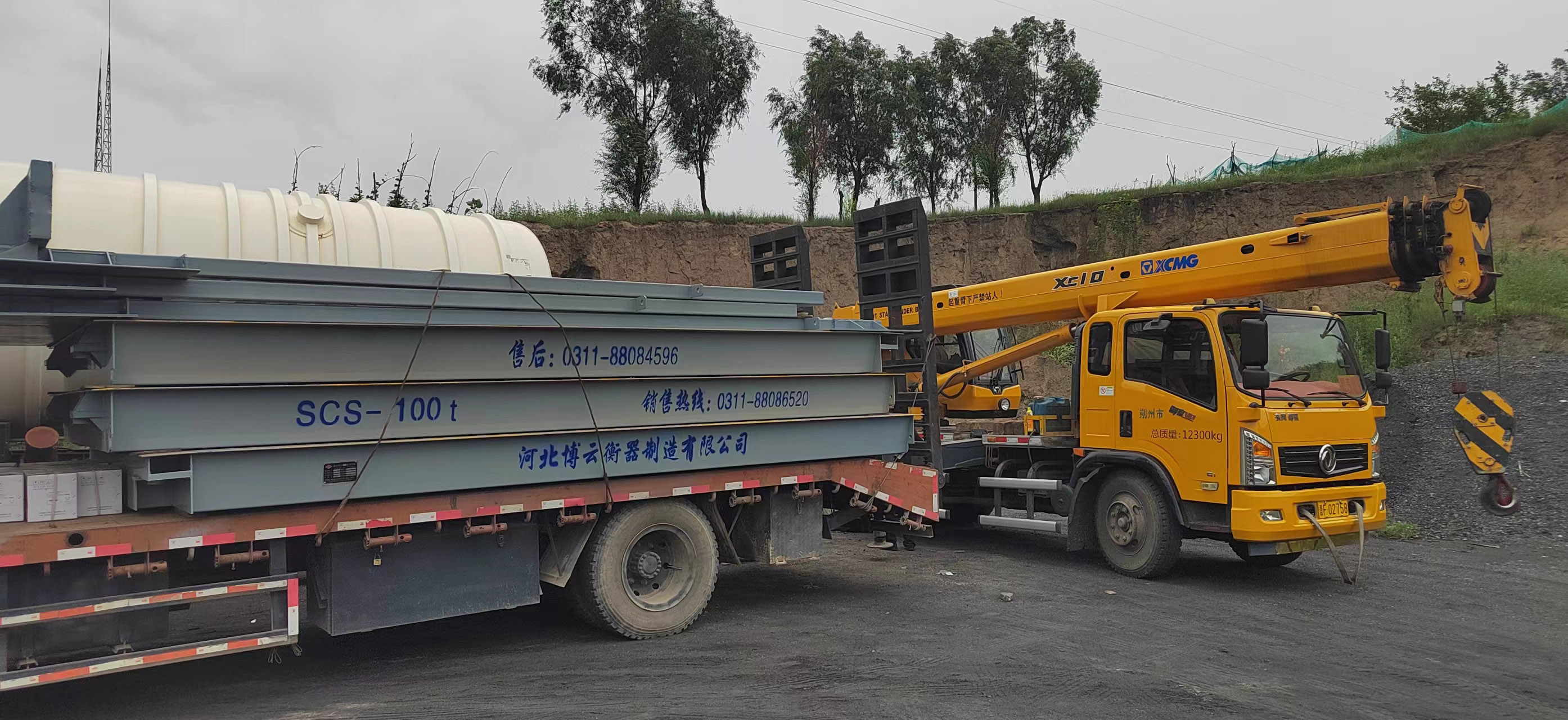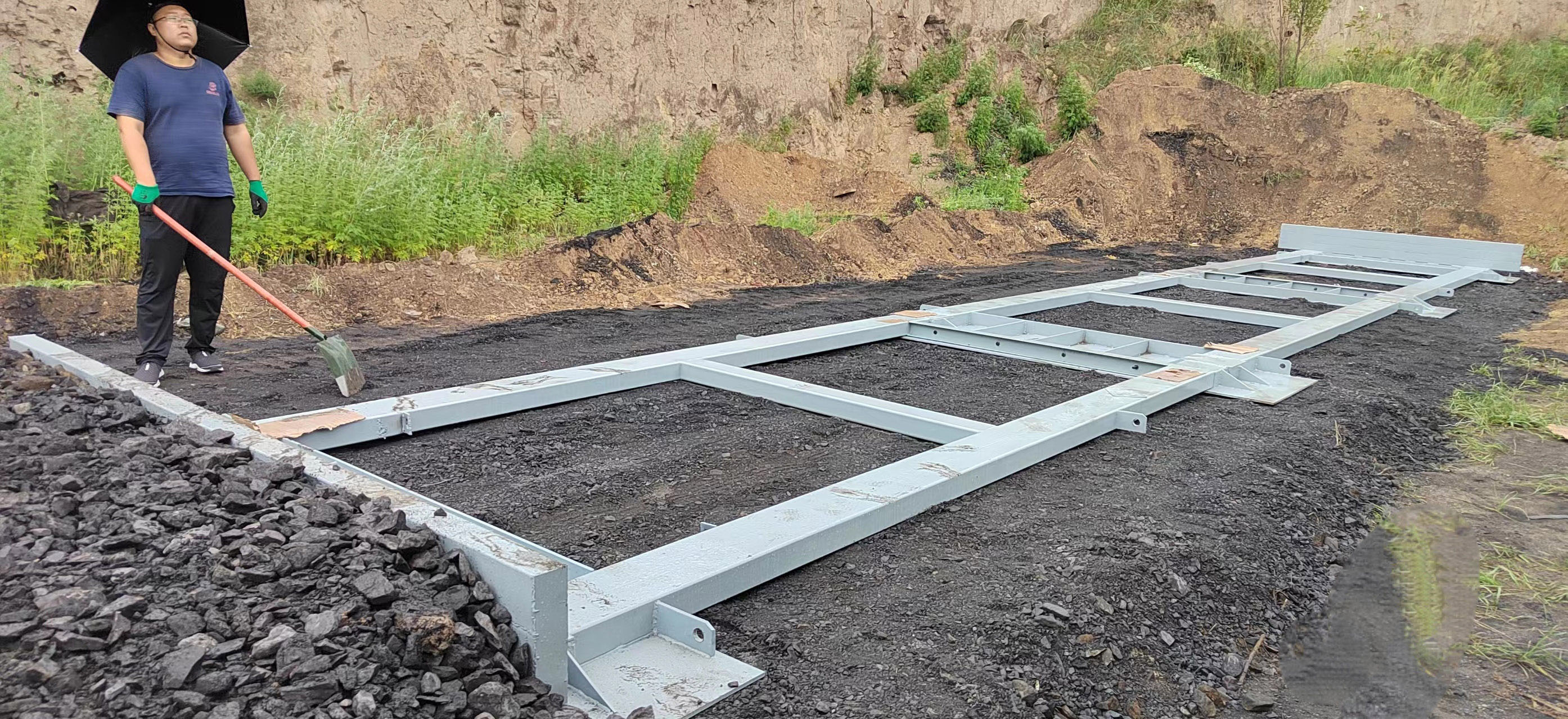山西朔州客戶,3*16米100噸地磅,加鋼構(gòu)基礎(chǔ),冒雨安裝完畢。