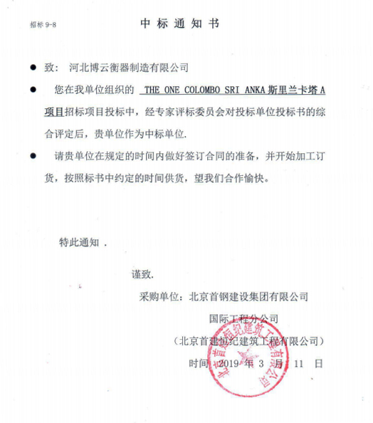 本次中標(biāo)充分體現(xiàn)了我公司的技術(shù)實(shí)力和服務(wù)水平,進(jìn)一步證明了我公司在同行業(yè)中的競爭優(yōu)勢,也更進(jìn)一步開闊了國際市場。